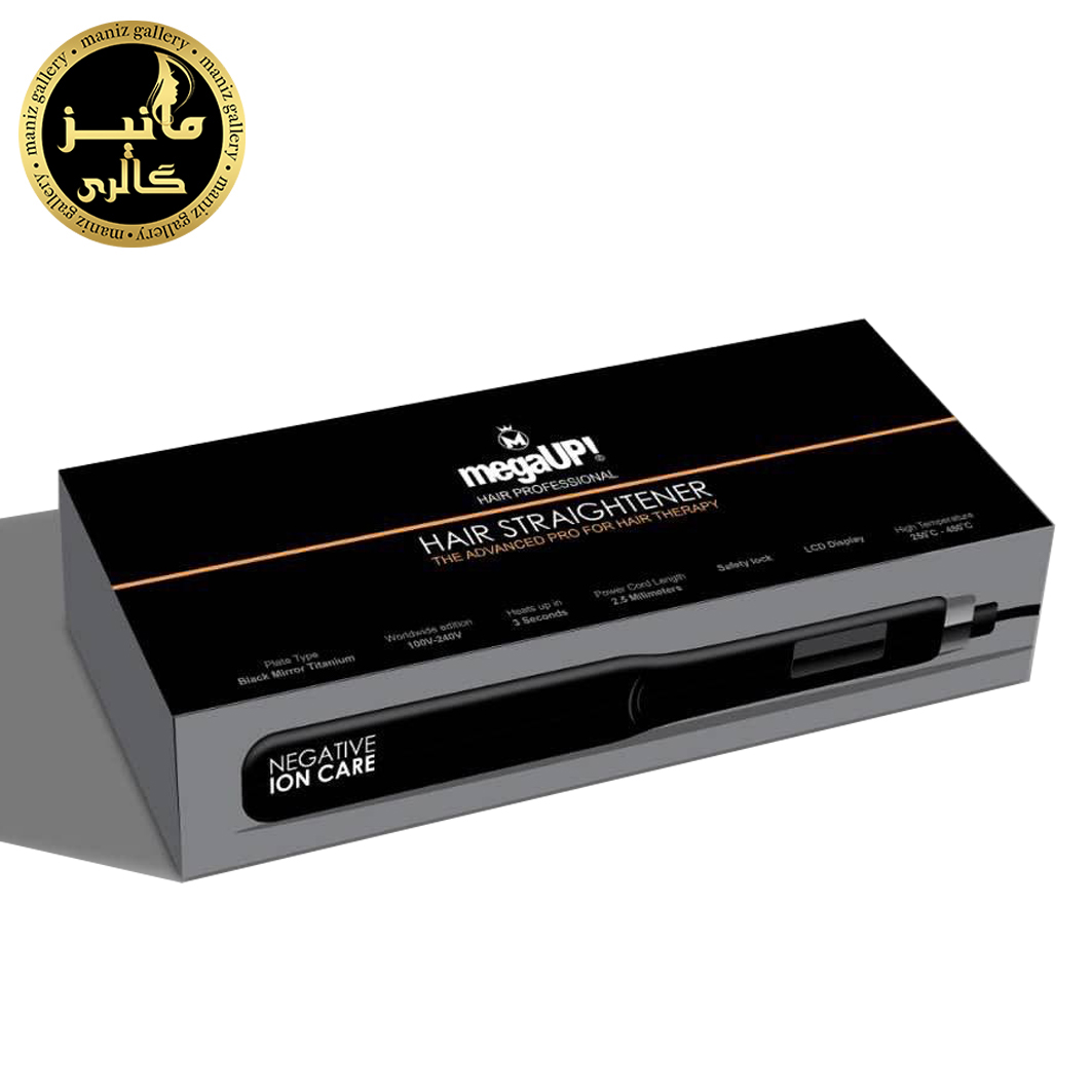 اتو موی حرفه ای یون دار مشکی مگا آپ MEGA UP از برترین برندهای حال حاضر در بازار می باشد که از تکنولوژی روز دنیا بهره برده و مناسب هر کاربری و سلیقه ای تولید شده است. این محصول دارای دو برد حرارتی مستقل بوده و مناسب برای صاف کردن و انواع تراپی مو می باشد.
